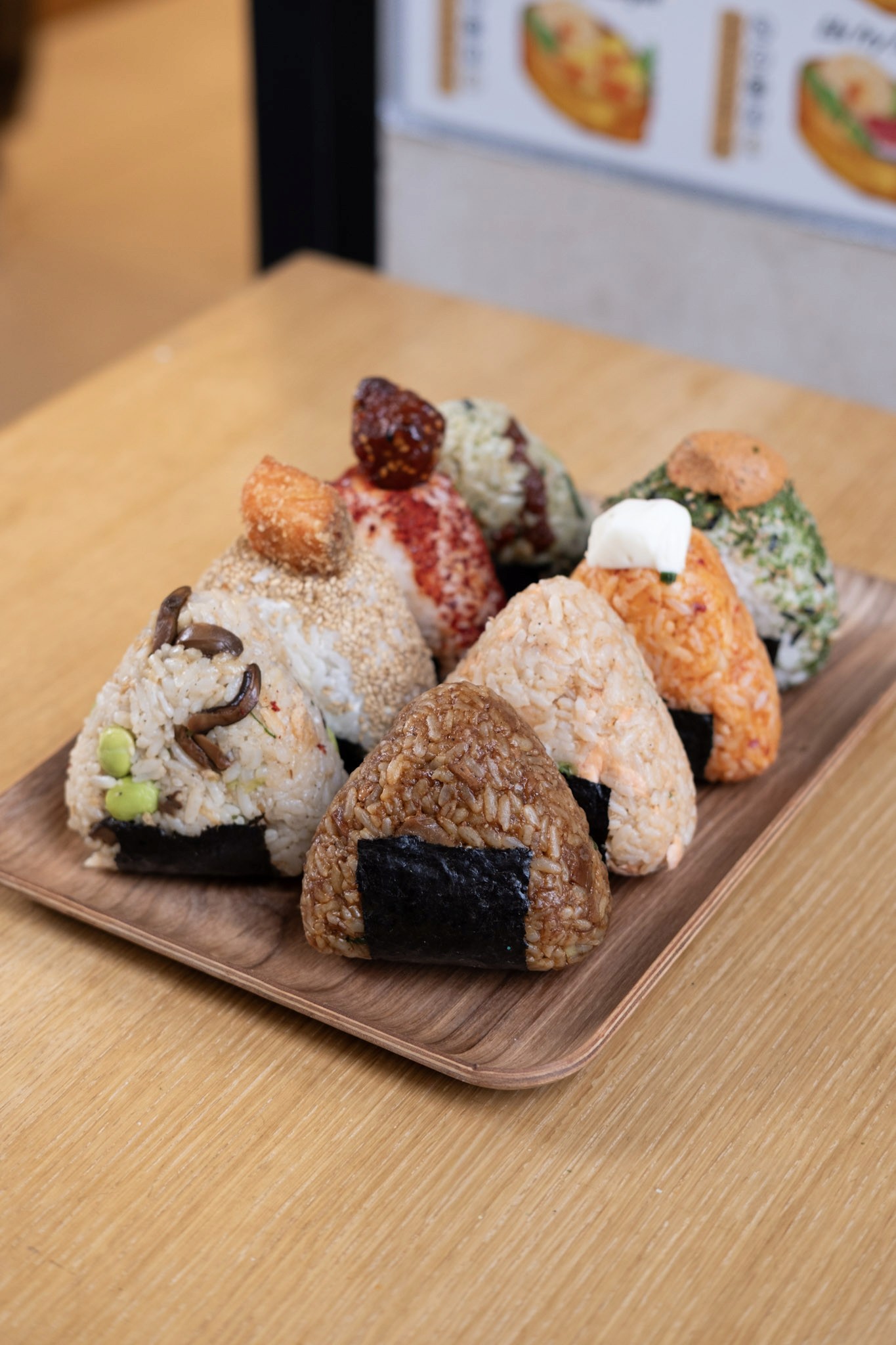 un triangle de riz fondant enveloppé d une algue nori croustillante, garni selon vos envies…